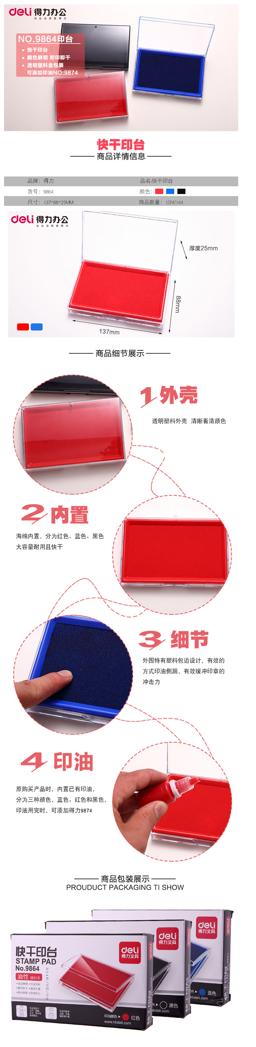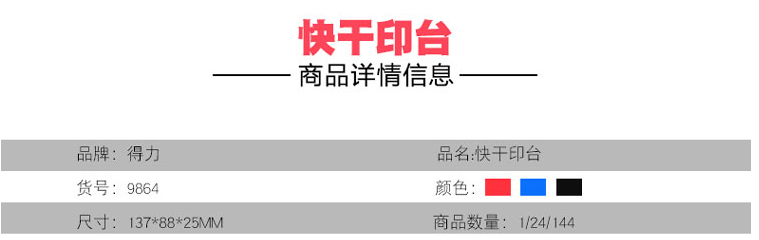 得力(deli)9864方形快干印台印泥清晰印记137*88mm蓝色 自营