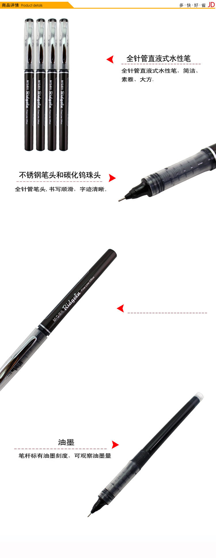 晨光(M&G)文具0.5mm黑色中性笔直液式全针管签字笔办公水笔12支/盒ARP50901 自营