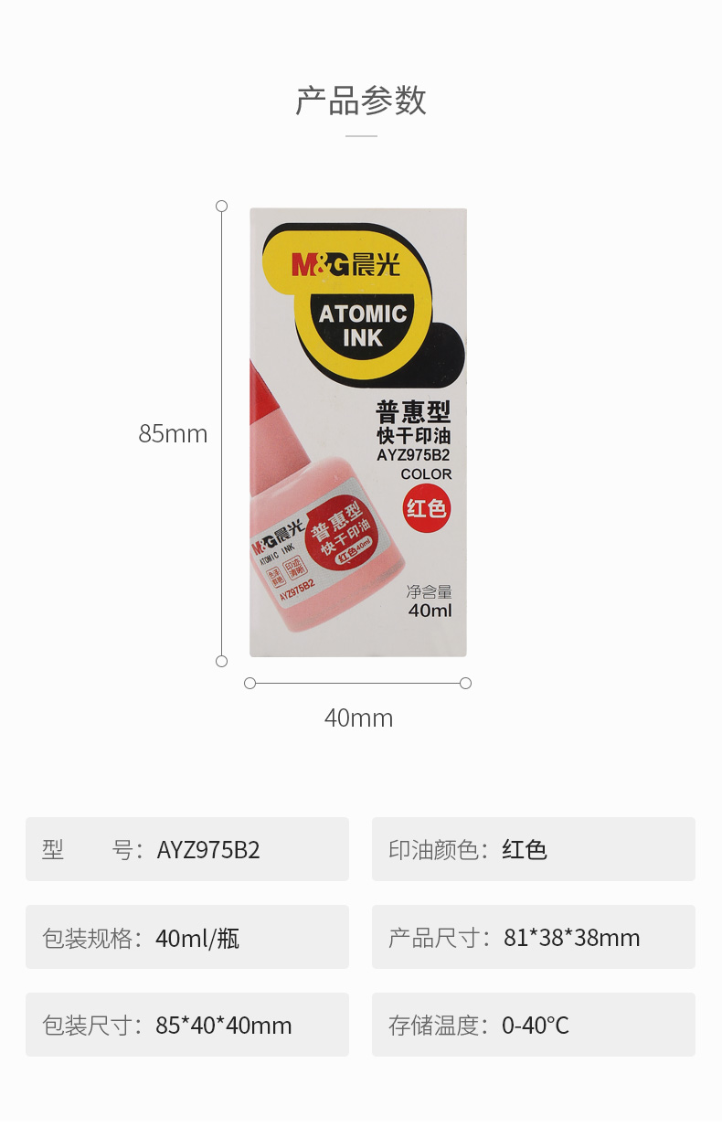 晨光(M&G)文具40ml红色财务快干印油普惠型办公印章印台专用印油单瓶装AYZ975B2 自营