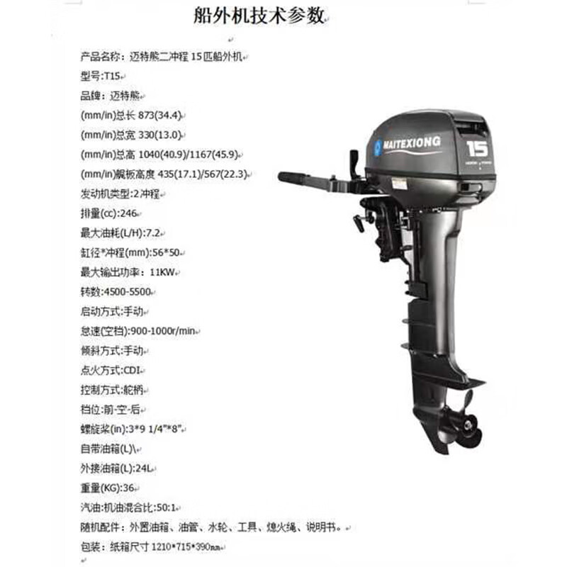 迈特熊(MATT BEAR)二冲程船外机-15匹 自营